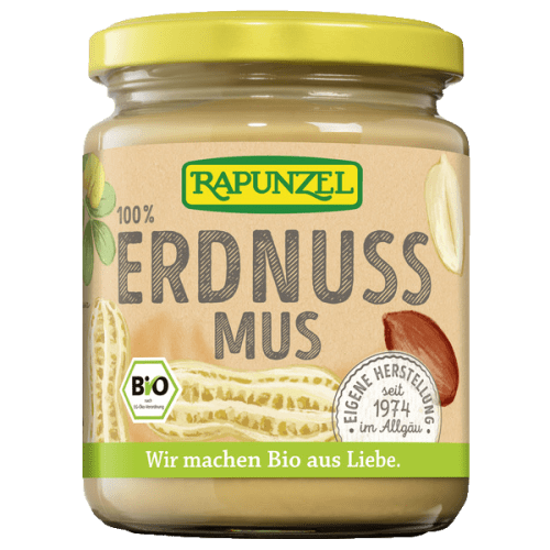 Erdnussmus fein bio Rapunzel. Deine Proteinquelle als Brotaufstrich! Eco control number: DE-ÖKO-006 Erdnussmus fein von Rapunzel ist ein aus 100% biologischen Erdnüssen gewonnenes Erdnussmus. Es enthält keine Zusätze und eignet sich hervorragend für eine vegetarische oder auch vegane Ernährung. Sein volles Erdnussaroma ist dem besonderen Herstellungsverfahren geschuldet, bei dem die Erdnüsse mit Heißluft aus regenerativen Energien geröstet werden. Lass Dich von der vielseitigen Verwendbarkeit des Muses überzeugen.Du kannst das Erdnussmus fein von Rapunzel als Brotaufstrich, in Gemüsegerichten, Dips, Saucen oder auch Cookies verwenden. Deiner Phantasie sind keine Grenzen gesetzt. Sollte sich nusseigenes Öl an der Oberfläche des Muses absetzen, kannst Du es bedenkenlos unterrühren.