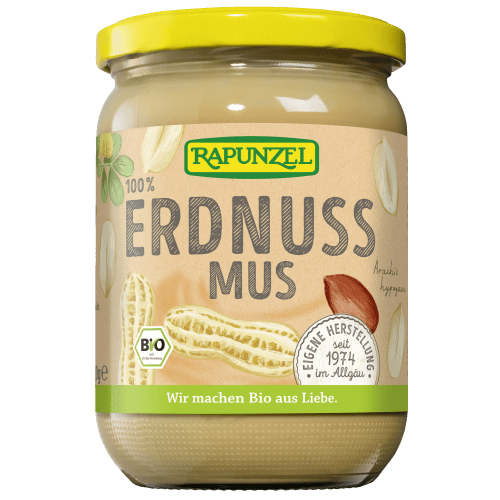Erdnussmus fein bio Rapunzel. Deine Proteinquelle als Brotaufstrich! Eco control number: DE-ÖKO-006 Erdnussmus fein von Rapunzel ist ein aus 100% biologischen Erdnüssen gewonnenes Erdnussmus. Es enthält keine Zusätze und eignet sich hervorragend für eine vegetarische oder auch vegane Ernährung. Sein volles Erdnussaroma ist dem besonderen Herstellungsverfahren geschuldet, bei dem die Erdnüsse mit Heißluft aus regenerativen Energien geröstet werden. Lass Dich von der vielseitigen Verwendbarkeit des Muses überzeugen.Du kannst das Erdnussmus fein von Rapunzel als Brotaufstrich, in Gemüsegerichten, Dips, Saucen oder auch Cookies verwenden. Deiner Phantasie sind keine Grenzen gesetzt. Sollte sich nusseigenes Öl an der Oberfläche des Muses absetzen, kannst Du es bedenkenlos unterrühren.