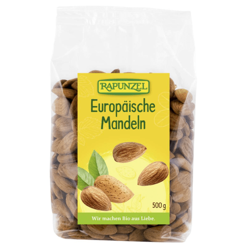 Europäische Mandeln bio Rapunzel. Sorgfältig getrocknete Mandeln aus Spanien! Eco control number: DE-ÖKO-006 Europäische Mandeln von Rapunzel sind aus ökologischem Landbau gewonnen und besitzen ein mildes und angenehm süßes Aroma. Die jedes Jahr zwischen August und September in Spanien geernteten, getrockneten und sorgfältig verlesenen Mandeln können Deinen Organismus mit einfach und mehrfach gesättigten, für den menschlichen Körper notwendigen Fettsäuren versorgen. Wenn Du auf gesunde Ernährung Wert legst, können Europäische Mandeln von Rapunzel genau das Richtige für Dich sein.Europäische Mandeln von Rapunzel sind sowohl als Knabberei für Zwischendurch ein Riesenspaß als auch beim Backen oder für süße und herzhafte Gerichte die ideale Ergänzung.