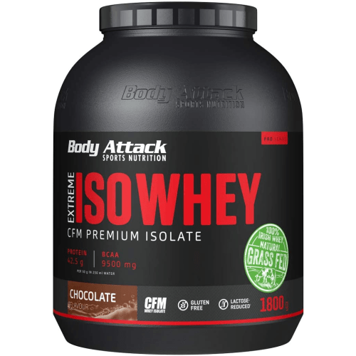 Extreme Iso Whey Pulver von Body Attack mit Chocolate Geschmack in der 1.8KG Packung. Aus echter Weidemilch!