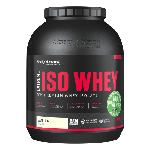 Extreme Iso Whey Pulver von Body Attack mit Vanilla Geschmack in der 1.8KG Packung. Extreme Iso Whey – 1800g – Vanilla hat die PZN 02469089. Aus echter Weidemilch!