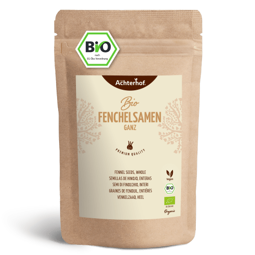 Fenchelsamen ganz Bio vom Achterhof. Fenchelsamen: Der ideale Gewürzpartner Fenchel: Breites Aromaprofil, das zu süß & pikant passt Die milden süßlich schmeckenden Fenchelsamen kaufen, ist eine Investition in eine vielfältige, ausbalancierte Aromenküche. Die getrockneten Früchte der Fenchelpflanze sind ideale Partner vieler intensiver Gewürze. Langer Pfeffer, schwarzer Pfeffer oder Kümmel profitieren von der angenehmen Milde der Fenchelsamen. Kaufen kann man ihn daher auch oftmals als Bestandteil verschiedener Gewürzmischungen. Fenchelsamen nehmen intensiv würzigen Komponenten nicht die eigene Geschmacksnote, mildern deren Schärfe aber etwas ab. So tragen Fenchelsamen zu einer harmonischen Aromenbalance bei. Die Chinesen wissen um diese harmonisierende Wirkung der Fenchelsamen, so gehören sie neben Szechuanpfeffer, Sternanis, Zimt und Gewürznelken zu den fünf Zutaten des bekannten Fünf-Gewürze-Pulvers. Und dieses wird in der asiatischen Küche in allen nur denkbaren Zubereitungen verwendet. Ob Fisch, Fleisch oder Gemüse, das Fünf-Gewürze-Pulver liefert die beliebteste Geschmackskombination im Reich der Mitte. Fenchelsamen kaufen: Ein europäisches Gewürz mit Tradition Doch nicht nur in der asiatischen Küche ist der Fenchelsamen eine begehrte Zutat. Auch bei uns findet er in Tee, Backwaren oder herzhaften Gerichten Verwendung. Kaum verwunderlich, wenn man weiß, dass die Fenchelpflanze ursprünglich in Mittel- und Südeuropa beheimatet ist. Die zu den Doldenblütlern zählende Pflanze wurde bereits im Mittelalter in vielen europäischen Klostergärten angebaut. Fenchelsamen kaufen ist also eine Entscheidung für ein echtes, europäisches Traditionsgewürz. Der Fenchel überzeugte schon früh. Durch seine ätherischen Öle glänzt er zum Beispiel ​als Tee. Fencheltee kaufen viele Eltern bereits für ihre Babys. Doch auch zum Backen kannst du Fenchelsamen kaufen. Ob im Lebkuchen oder Gewürzkuchen, die an Anis erinnernde, süßliche Note der Fenchelsamen passt perfekt zu Süßem. Und geradezu perfekt zu frisch gebackenem Brot. Als festen Bestandteil der Mischung kannst du sie auch im Brotgewürz kaufen, die Fenchelsamen. Schon die alten Römer sollen Fenchelsamen zur Verfeinerung ihres Brotes verwendet haben. Vor allem beim Verzehr fettreicher Fleischgerichte oder fetter Seefische, wie zum Beispiel Lachs, lohnt es sich, Fenchelsamen zu kaufen. Die kleinen Samen erweisen gerade nach gehaltvollen Feiertagen einen großen Dienst. Verwendet wird der Fenchelsamen am besten frisch. Du kannst ihn im Mörser grob zerstoßen, oder mit einer Gewürzmühle fein mahlen. In welcher Zusammenstellung du ihn verwenden möchtest, bleibt ganz dem persönlichen Geschmack überlassen. Ob zum Lauch- oder Karottengemüse, zum Einmachen von Gewürzgurken, zum Verfeinern des Hackbratens, als edle Note im Weihnachtsgebäck, oder frisch aufgebrüht im Fencheltee. Einfach Fenchelsamen kaufen und nach Lust und Laune variieren. Eco control number: DE-ÖKO-001 Viele lieben ihn als Gemüse, manch andere kennen Fenchel nur als Tee. Unser Bio-Fenchel besitzt einen milden, süßen Geschmack. Daher eignet er sich optimal in Kombination mit intensiveren Gewürzen wie Pfeffer oder Kümmel zum Ausgleich. Der Fenchel nimmt den anderen Gewürzen keinesfalls seinen Geschmack, mildert diese aber etwas ab.