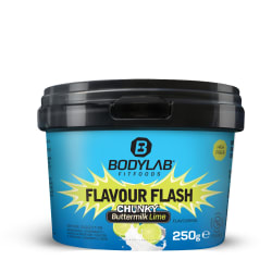 Flavour Flash Pulver von Bodylab24 mit Chunky Buttermilch-Limette Geschmack in der 0.25KG Packung. Abwechslung für zahlreiche Desserts, Teigwaren, Shakes und Co – Flavour Flash, unser Aromapulver für Süße und Geschmack – jetzt in neuer Größe. Das feine Flavour Flash Pulver lässt sich in zahlreiche Speisen und Getränken einrühren, sorgt für Geschmacksvariation, Süße und enthält bis zu 64 % Ballaststoffe je Portion. Egal ob Du Abwechslung beim täglichen Protein, Weight Gainer oder Meal-Replacement Shake brauchst, einem Smoothie etwas mehr Geschmack verleihen, dem Pancake oder Kuchenteig etwas zusätzliches Aroma oder kalorienreduzierte Süße zufügen oder ob Du Müsli, Quark & Co anreichern möchtest – das Flavour Flash Pulver ist dafür perfekt! Flavour Powder ist mit Süßungsmittel gesüßt und weist je 4 g Portion nur 10-11 kcal auf (je nach Geschmacksrichtung). Der ideale Partner für deinen Alltag und beim Kalorienmanagement, da es hilft, die ein oder andere überflüssige Kalorie auf einfache und leckere Art und Weise einzusparen. Es stehen verschiedene Geschmacksvarianten zur Wahl. Flavour Flash kann von jedem genutzt werden, der im Rahmen einer kalorienreduzierten Ernährungsweise ein paar Zusatzkalorien einsparen möchte. Das Aromapulver bringt Süße und Geschmack, peppt so manche Mahlzeit auf, schafft geschmackliche Abwechslung bei wenig Kalorien. Ein idealer Alltags-Begleiter oder auch eine Alternative für unsere beliebten Flavour Drops mit dem Plus an Ballaststoffen. Mit unserem Flavour Flash Pulver kannst Du ganz einfach kalorienreduzierte Desserts herstellen und in zahlreiche neutrale Speisen Geschmacksvariationen, Süße und eine Extraportion Ballaststoffe bringen. Der Hauptbestandteil aller Flavour Flash Varianten ist Maisdextrin, das je Portion bis zu 64 % Ballaststoffe enthält und mit Süßungsmittel gesüßt ist. Es kann zum Beispiel in Magerquark, Naturjoghurt oder die nordische Skyr-Variante eingerührt werden und für Geschmack und Süße sorgen, zu verschiedene Teigvarianten zugefügt werden oder einfach zum Proteinshake, Smoothie oder dem morgendlichen Müsli zugemischt werden.