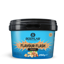 Flavour Flash Pulver von Bodylab24 mit Peanut Geschmack in der 0.25KG Packung. Abwechslung für zahlreiche Desserts, Teigwaren, Shakes und Co – Flavour Flash, unser Aromapulver für Süße und Geschmack – jetzt in neuer Größe. Das feine Flavour Flash Pulver lässt sich in zahlreiche Speisen und Getränken einrühren, sorgt für Geschmacksvariation, Süße und enthält bis zu 64 % Ballaststoffe je Portion. Egal ob Du Abwechslung beim täglichen Protein, Weight Gainer oder Meal-Replacement Shake brauchst, einem Smoothie etwas mehr Geschmack verleihen, dem Pancake oder Kuchenteig etwas zusätzliches Aroma oder kalorienreduzierte Süße zufügen oder ob Du Müsli, Quark & Co anreichern möchtest – das Flavour Flash Pulver ist dafür perfekt! Flavour Powder ist mit Süßungsmittel gesüßt und weist je 4 g Portion nur 10-11 kcal auf (je nach Geschmacksrichtung). Der ideale Partner für deinen Alltag und beim Kalorienmanagement, da es hilft, die ein oder andere überflüssige Kalorie auf einfache und leckere Art und Weise einzusparen. Es stehen verschiedene Geschmacksvarianten zur Wahl. Flavour Flash kann von jedem genutzt werden, der im Rahmen einer kalorienreduzierten Ernährungsweise ein paar Zusatzkalorien einsparen möchte. Das Aromapulver bringt Süße und Geschmack, peppt so manche Mahlzeit auf, schafft geschmackliche Abwechslung bei wenig Kalorien. Ein idealer Alltags-Begleiter oder auch eine Alternative für unsere beliebten Flavour Drops mit dem Plus an Ballaststoffen. Mit unserem Flavour Flash Pulver kannst Du ganz einfach kalorienreduzierte Desserts herstellen und in zahlreiche neutrale Speisen Geschmacksvariationen, Süße und eine Extraportion Ballaststoffe bringen. Der Hauptbestandteil aller Flavour Flash Varianten ist Maisdextrin, das je Portion bis zu 64 % Ballaststoffe enthält und mit Süßungsmittel gesüßt ist. Es kann zum Beispiel in Magerquark, Naturjoghurt oder die nordische Skyr-Variante eingerührt werden und für Geschmack und Süße sorgen, zu verschiedene Teigvarianten zugefügt werden oder einfach zum Proteinshake, Smoothie oder dem morgendlichen Müsli zugemischt werden.
