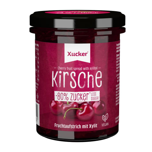 Fruchtaufstrich Xucker mit Kirsche Geschmack in der 0.22KG Packung. Fruchtaufstrich von Xucker Die Fruchtaufstriche von Xucker eignen sich perfekt für ein gesundes Frühstück, in Desserts, zum Naschen und als fruchtige und gesunde Alternative für herkömmliche Marmelade. Denn die handgemachten Fruchtaufstriche sind mit Xylit gesüßt und enthalten deutlich weniger Zucker als normale Marmelade. Doch das macht sie nicht weniger lecker. Mit einem Fruchtanteil von ca. 70% sorgen die Fruchtaufstriche das ganze Jahr über für Genuss. Für den Fruchtgenuss am Morgen!