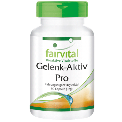 Gelenk-Aktiv Pro Kapseln von Fairvital. Gelenk-Aktiv Pro von Fairvital Zwischen gesunden Gelenken ruht ein Knorpel, der uns als natürlicher Stoßdämpfer dient. Im Zusammenspiel mit der Synovialflüssigkeit (Gelenkschmiere) bleiben unsere Gelenke geschmeidig und beweglich. Aber je älter wir werden, desto weniger Gelenkflüssigkeit produziert unser Körper. Die Gelenk-Aktiv Pro Kapseln von Fairvital beinhalten die 5 Bausteine Glucosamin, Chondroitin, MSM, Hyaluronsäure und Astaxanthin, welche zusammen die vollständige Gelenkformel bilden. Nahrungsergänzungsmittel von Fairvital!