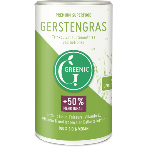 Gerstengras Pulver bio Pulver von Greenic. Gerstengras Pulver von Greenic Gerstengras Pulver von Greenic besteht aus reinem Gerstengraspulver in Rohkostqualität, das zu 100% aus kontrolliert biologischem Anbau stammt. Das Produkt ist glutenfrei und vegan und enthält neben Proteinen viele Ballaststoffe. Der frische, leicht süßliche Geschmack des Gerstengras Pulvers bereichert Smoothies und Getränke aller Art. Mische 3 schwach gehäufte Teelöffel Gerstengras Pulver von Greenic mit 250ml Frucht- oder Gemüsesaft oder anderen pflanzlichen Drinks. Alternativ kannst du das Pulver in einen Smoothie mischen. Wenn Du das Trinkpulver vorab in etwas warmem Wasser auflöst, vermeidest Du, dass sich störende Klümpchen bilden. Eco control number: DE-ÖKO-001 Wer sagt zu leckeren Drinks schon nein?!