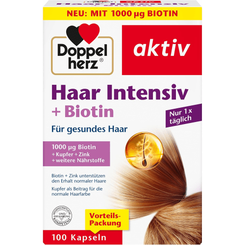 Haar Intensiv Kapseln von Doppelherz. Haar Intensiv von Doppelherz Kupfer unterstützt die normale Haarpigmentierung (Haarfarbe) Folsäure spielt zusammen mit Vitamin B12 eine Rolle für die Zellteilung. Vitamin B1, Vitamin B2 und Pantothensäure leisten einen Beitrag zum normalen Energiestoffwechsel. Vitamin B6 wird für die Bildung der Aminosäure Cystein benötigt. Das Spurenelement Molybdän trägt zur Verstoffwechselung schwefelhaltiger Aminsosäuren bei. L-Cystein ist eine schwefelhaltige Aminosäure. Sie kommt besonders in den Faserproteinen (Keratin) menschlicher Haare und Nägel vor. L-Methionin ist ebenfalls eine schwefelhaltige Aminosäure. Da der menschliche Organismus diese Aminosäure nicht selbst herstellen kann, ist er auf die Zufuhr mit der Nahrung angewiesen. Methionin dient wiederum im Körper unter anderem zur Bildung von Cystein. Schachtelhalme (Equisetum arvense) gehören zu den ältesten Pflanzen der Welt: Vor knapp 400 Millionen Jahren entwickelten sich diese Gewächse – mit damals baumgroßen Trieben. Bereits im Altertum schätzten Araber und Griechen diese Pflanze. In Asien wird Schachtelhalm heute als Gemüse angebaut. Charakteristisch für den Schachtelhalm sind winzige Kieselsäurekristalle, die den Zellwänden ihre Festigkeit geben. Die Blätter des Schachtelhalms ähneln daher denen eines Tannenbaumes. Verzehrempfehlung: Täglich 1 Kapsel mit etwas Flüssigkeit unzerkaut einnehmen. Schönes Haar prägt in der heutigen Zeit das Schönheitsideal unserer Gesellschaft und ist wichtig für unser Wohlbefinden. Wir tun alles, damit unser Haar gut aussieht. Wir föhnen es, wir färben oder bleichen es und verwenden die unterschiedlichsten Styling-Mittel. Doch dadurch strapazieren wir unser Haar auch täglich. Zusätzlich greifen Sonnenbäder oder Salz- und Chlorwasser unser Haar an. Haare erbringen durch Erneuerung bzw. Wachstum täglich Höchstleistungen. Hierfür benötigen sie Nähr- und Aufbaustoffe, die wir über die Nahrung regelmäßig und ausreichend zuführen müssen. Die Kapseln von Doppelherz Haar Intensiv + Biotin kombinieren Vitamine, Spurenelemente, L-Cystein, L-Methionin sowie Schachtelhalmextrakt.