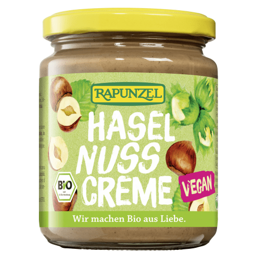 Haselnuss Creme vegan bio Rapunzel. Die Haselnusscreme ist eine vielseitig einsetzbare Nusscreme, der 60% frisch gemahlene Haselnüsse aus biologischem Anbau ein intensiv aromatisches Aroma verleihen! Eco control number: DE-ÖKO-006 Nussmus und Nusscremes sind aus der Rapunzel Produktpalette nicht mehr wegzudenken. Das Traditionsunternehmen produziert schon seit 40 Jahren die leckeren und nährstoffreichen Nussmus und Cremes und strebt nach stetiger qualitativer und geschmacklicher Verbesserung, sodass die individuell verwendbare Haselnusscreme von Rapunzel, egal ob als Brotaufstrich oder Backzutat verwendet, eine leckere und gesunde Wahl darstellt. Die Haselnusscreme ist eine vielseitig einsetzbare Nusscreme, die mit 60% frisch gemahlenen Haselnüssen aus biologischem Anbau der Creme ihr intensiv aromatisches Aroma verleiht. Leicht gesüßt und abgerundet mit einer Prise Meersalz versüßt die Haselnusscreme jede Mahlzeit.