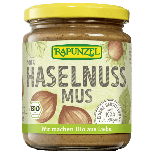 Haselnussmus bio Rapunzel. Haselnuss-Aufstrich ohne Zuckerzusatz! Eco control number: DE-ÖKO-006 Das Haselnussmus der Firma Rapunzel wird aus gerösteten Haselnüssen, die aus ökologischem Landbau stammen gefertigt. Sein einzigartiges Aroma verdankt das Mus einem speziellen Verfahren, bei dem die Nüsse mit Heißluft aus regenerativen Energien geröstet werden. Das Haselnussmuses von Rapunzel ist frei von Zusatzstoffen und kann auch im Rahmen einer laktose- und glutenfreien sowie vegetarischen und veganen Ernährung Anwendung finden.Du kannst das Haselnussmus von Rapunzel als Brotaufstrich verwenden oder auch Gemüsegerichte, Saucen, Dips und Müslis verfeinern. Deiner Kreativität sind keine Grenzen gesetzt.