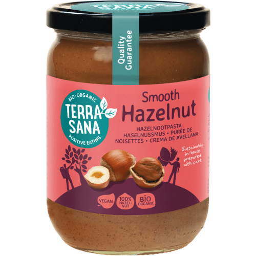Haselnussmus bio Terrasana. Was ist Haselnussmus von Terrasana und wie wirkt es? Haselnussmus von Terrasana ist ein aromatisches, nahrhaftes Mus aus 100% biologischen, gerösteten Haselnüssen. Haselnüsse sind kleine, gesunde Kraftpakete voller wichtiger Nähr- und Vitalstoffe. Haselnussmus von Terrasana verpackt all diese Vorzüge in einem leckeren Mus. Haselnussmus von Terrasana ist als Brotaufstrich pur oder mit Marmelade ein Genuss. Salatdressings erhalten durch das Mus einen exotischen Kick. Desserts, Gebäck, Pfannkuchen oder Müsli verleiht es eine nussige Note. Vor der Verwendung sollte das Nussöl an der Oberfläche untergerührt werden. Eco control number: NL-BIO-01 Leckeres Mus aus gerösteten Bio Haselnüssen.