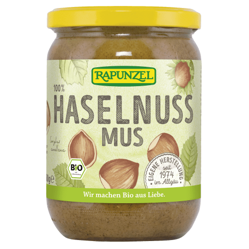 Haselnussmus bio Rapunzel. Haselnuss-Aufstrich ohne Zuckerzusatz! Eco control number: DE-ÖKO-006 Zutatenliste: Haselnüsse*.* = Zutaten aus ökol. Landbau. Nettogewicht: 0,5kg Allergene: Enthält Haselnüsse. Kann Spuren von Erdnuss, Lupine, Milch, Sesam enthalten. Verzehrempfehlung: Als Brotaufstrich, für Gemüsegerichte, Dips, Saucen, Dressings, Süßspeisen, in Milchshakes oder ins Müsli. Das Haselnussmus der Firma Rapunzel wird aus gerösteten Haselnüssen, die aus ökologischem Landbau stammen gefertigt. Sein einzigartiges Aroma verdankt das Mus einem speziellen Verfahren, bei dem die Nüsse mit Heißluft aus regenerativen Energien geröstet werden. Das Haselnussmuses von Rapunzel ist frei von Zusatzstoffen und kann auch im Rahmen einer laktose- und glutenfreien sowie vegetarischen und veganen Ernährung Anwendung finden.Du kannst das Haselnussmus von Rapunzel als Brotaufstrich verwenden oder auch Gemüsegerichte, Saucen, Dips und Müslis verfeinern. Deiner Kreativität sind keine Grenzen gesetzt.