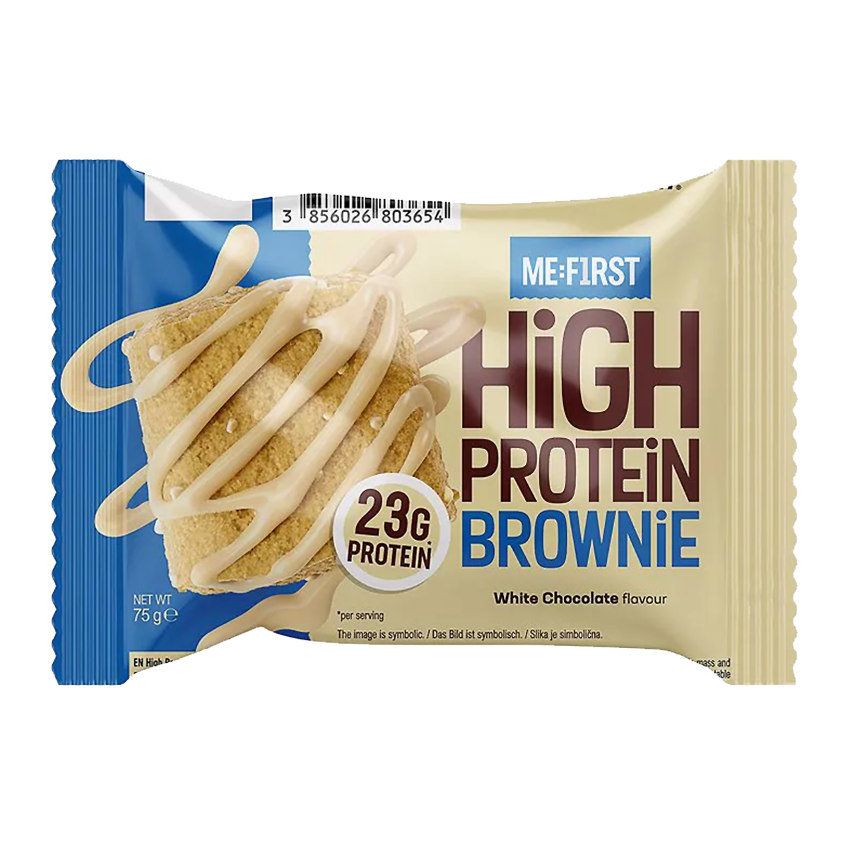 Der Me:First Protein Brownie ist mit seinen 75 Gramm ein idealer Snack, wenn du etwas Süßes willst, aber gleichzeitig deine Proteinaufnahme steigern möchtest. Mit beeindruckenden 23?g hochwertigem Protein pro Packung supportet er Muskulatur und Knochengesundheit, ohne überflüssige Kalorien zu liefern. Der saftige Brownie ist mit knusprigen dunklen oder weißen Schokoladenstücken veredelt, je nach Sorte. Dank des handlichen Formats passt er in jede Sporttasche, den Arbeitsplatz oder die Hosentasche, was den Brownie zum perfekten Snack im Gym, Büro oder einfach für zuhause macht. Mit nur 4,2?g Zucker pro Portion bleibt die Kalorienbilanz erfreulich niedrig, während 303?kcal Energie liefern. Vegetarisch und frei von unnötigem Ballast – genau richtig für ernährungsbewusste Genießer & Snacker jeder Art.