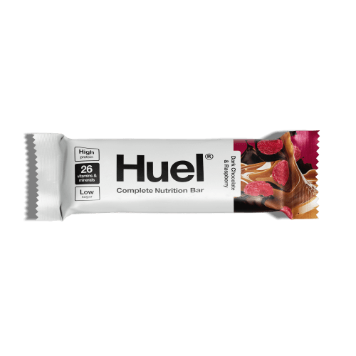 Huel Complete Nutrition Bar Riegel von HUEL mit Dark Chocolate Raspberry Geschmack in der 0.055KG Packung. Entdecke die Huel Complete Nutrition Bars – dein vollwertiger, veganer Snack für unterwegs. Die Huel Complete Nutrition Bars sind der ideale Snack für unterwegs – vollwertig, lecker und zu 100% vegan. Jeder Riegel liefert 13g pflanzliches Protein sowie 26 essentielle Vitamine und Mineralstoffe. Mit weniger als 200kcal pro Riegel sind sie perfekt für Büro, Sport oder Reisen. Erhältlich in den Geschmacksrichtungen Dark Chocolate Raspberry, Chocolate Fudge Brownie und Peanut Caramel – einzeln oder in der praktischen 12er-Box.