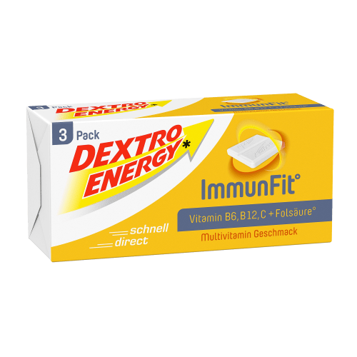 ImmunFit Multivitamin Dextro Energy mit Multivitamin Geschmack in der 0.138KG Packung. Die schnelle Unterstützung für das Immunsystem! Dextro Energy Immunfit – Traubenzucker mit 10 Vitaminen Dextro Energy* ImmunFit** kombiniert Traubenzuckertabletten mit einem Multivitamin-Komplex, um deinen Körper mit schnell verfügbaren Kohlenhydraten und essenziellen Vitaminen zu versorgen. Zu den enthaltenen Vitaminen gehören Thiamin, Riboflavin, Vitamin E, Niacin, Biotin, Folsäure und Pantothensäure. Die synergistische Wirkung von Vitamin C**, B6** und B12** trägt dazu bei, die normale Funktion deines Immunsystems zu unterstützen. Egal, ob du sportlich aktiv bist, einen Familienausflug machst, in der Uni oder im Büro bist – die einzeln verpackten Traubenzuckertabletten sind praktisch und passen in jede Tasche. Damit bist du in der Lage, jeder Herausforderung jederzeit und überall zu begegnen und dich punktgenau zu fokussieren. Nach Belastungen kannst du außerdem optimal Energie tanken. Entdecke jetzt Dextro Energy* ImmunFit** und sichere dir deine leckeren Traubenzuckertabletten mit 10 Vitaminen – für das ganze Jahr und jede H…
