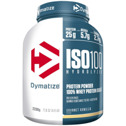 ISO 100 Hydrolyzed Pulver von Dymatize mit Gourmet Vanilla Geschmack in der 2.264KG Packung. Dymatize – ISO 100 Dymatize ISO 100 ist ein Molkeprotein-Isolat, dass durch seine besonders aufwändige Herstellung und durch besonders sorgfältig ausgewählte Zutaten einen leicht erkennbaren Unterschied zu anderen, ähnlichen Produkten aufweist. Laktose und Fett wurden von Dymatize Nutrition ISO-100 entzogen, damit durch Dymatize ISO 100 eine bekömmliche und leicht verdauliche Proteinquelle entsteht. Während einer intensiven Trainingszeit ist neben einer gesunden und ausgewogenen Ernährung die maximale Proteinanwendung der wichtigste Faktor. Jede Portion Dymatize ISO-100 enthält 24 Gramm Protein und das bei 0g Kohlenhydraten und 0g Fett. Dieses Verhältnis erfüllt die höchsten Standards unter den Supplementen. Dymatize ISO 100 besteht zu 86% aus reinem Protein! sofortige Mischfähigkeit kein Laktosegehalt, perfekt geeignet für kohlenhydratarme Diäten besonders schnell löslich Allergene: Enthält Milch. Kann Spuren von Eiern und Soja. Verzehrempfehlung: 1 Messlöffel (beiliegend) in 150-180 ml Wasser, Milch oder Getränk deiner Wahl einrühren und gut vermischen. ISO 100 – mehr als 85% Protein bei geringen Mengen Kohlenhydraten und ohne Fett.