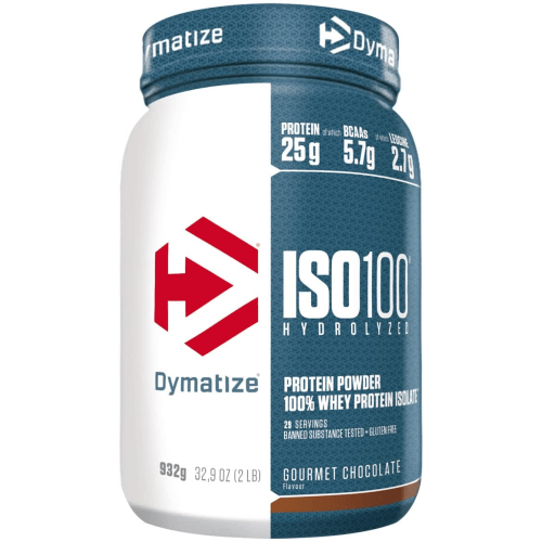ISO 100 Hydrolyzed Pulver von Dymatize mit Gourmet Chocolate Geschmack in der 0.932KG Packung. Dymatize – ISO 100 900 gDymatize ISO 100 ist eine Kombination aus hydrolisiertem Molkenprotein-Isolat und normal hergestelltem Molkenprotein-Isolat, dass als reinstes und hochwertigstes Wheyprotein gilt.Jeder Shake liefert bis zu 25g Eiweiß (variiert je nach Geschmacksrichtung) bei Mischung mit Wasser, zudem sind wenig Fett und Kohlenhydrate enthalten, was auch die Nutzung in einer Diätphase ermöglicht. ISO 100 eignet sich zur Anreicherung der normalen Ernäherung in Muskelaufbau-/Erhaltungsphasen und immer, wenn der Bedarf an Eiweiß erhöht ist. Der ISO 100 Shake kann von Athleten der unterschiedlichsten Sportarten zu allen Zeiten des Tages, z.B. zwischen den Mahlzeiten, genutzt werden. Besonders empfohlen wird er vor und/oder nach dem Training. Vorteile von ISO 100: Dymatize ISO 100 besteht zu 86% aus reinem Protein! sofortige Mischfähigkeit perfekt geeignet für kohlenhydratarme Diäten besonders gut und schnell löslich Kombination aus hydrolisiertem und normal hergestelltem Molkenprotein-Isolat.