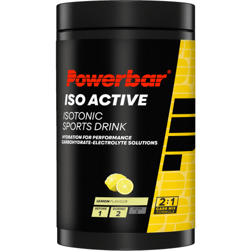Isoactive Pulver von Powerbar mit Lemon Geschmack in der 0.6KG Packung. PowerBar – Iso Active 600g Iso Active mit C2Max liefert schnelle Energie und ist der perfekte Begleiter vor oder während des Sports. Iso Active von PowerBar – Vorteile: liefert verschiedene Kohlenhydratquellen schnell verfügbare Energie Mineralstoffe enthalten ideal vor und während des Trainings Was beinhaltet das Iso Active Pulver? Iso Active beinhaltet verschiedene Kohlenhydratquellen (Dextrose, Maltodextrin, Fruktose) und Mineralstoffe (Natriumcitrate, Natriumchlorid, Calciumlactat, Kaliumchlorid, Magnesiumcarbonate). Warum Iso Active von Powerbar? Ein Drink aus Iso Active Pulver ist ein idealer Begleiter für die nächste, langandauernde Trainingseinheit. Er liefert schnell verfügbare Kohlenhydrate und wichtige Mineralstoffe für den Elektrolythaushalt. Verbrauchte Energiespeicher und durch Schwitzen verloren gegangene Elektrolyte können so vor und während des Trainings aufgefüllt werden, die Leistungsfähigkeit wird unterstützt. Für wen ist Iso Active geeignet? Ein Drink mit Iso Active Pulver kann von Sportlern aller Sportarten zur Anreicherung der Kohlenhydrat- und Mineralstoffversorgung vor und während des Trainings genutzt werden. Besonders empfohlen wird das Getränk für Ausdauersportler mit lang anhaltenden und intensiven Trainingseinheiten oder Wettkämpfen. Wann sollte ein Drink mit Iso Active Pulver konsumiert werden? Für eine Portion mische 33g Pulver mit 500ml Wasser. Einen Teil der Portion (200-300ml) als Aufladung der Energiespeicher mit Kohlenhydraten kann ca. 60 Minuten vor dem Training getrunken werden, ansonsten den fertigen Drink alle 15-20 Minuten mit 150-200ml während der Belastung konsumieren. Das fertige Sportgetränk liefert schnell verfügbare Energie und eine Anreicherung für z.B. durchs Schwitzen verbrauchte Elektrolyte. Allergene: Kann Spuren von Gluten, Ei, Milch, Soja und Nüssen enthalten. Verzehrempfehlung: Allgemeine Flüssigkeitszufuhrempfehlung für Aktivitäten >60 Minuten: Vor dem Sport nach Bedarf trinken. Während des Sports ungefähr alle 15 Minuten 150 – 200ml trinken. Entsprechend des eigenen Durstgefühls trinken. Zubereitung (1 Portion): 33 g Pulver (ca. 1 ½ Messlöffel – beiliegend) mit 500 ml Wasser anmischen. Im Rahmen einer abwechslungsreichen und ausgewogenen Ernährung und einer gesunden Lebensweise. Max. 1 Portion/ Tag. Iso Active mit C2Max liefert schnelle Energie und ist der perfekte Begleiter vor oder während des Sports.