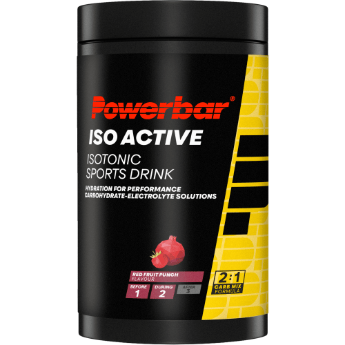 Isoactive Pulver von Powerbar mit Red Fruit Punch Geschmack in der 0.6KG Packung. Was ist Isoactive von Powerbar und wie wirkt es? Da jeder Athlet beim Sport nicht nur Wasser sondern auch Mineralstoffe verliert, ist es besonders erfreulich, diese in Form von Isoactive von Powerbar dem Körper wieder zuführen zu können. Isoactive von Powerbar weist die 5 Hauptelektrolyte Natrium, Chlorid, Kalium, Magnesium und Kalzium in einem perfekten Verhältnis auf. Der Drink liefert außerdem eine zusätzliche Kohlenhydrat-Mischung aus Glukose und Fruktose. Löse 3 Esslöffel voll Isoactive von Powerbar in 500ml Wasser auf und trinke 200-300ml des Getränks in der Stunde vor dem Sport. Sorge dafür, dass Du während der Sporteinheit alle 15 Minuten weitere 150-200ml zu Dir nimmst. Hab deinen Wasserhaushalt im Blick!