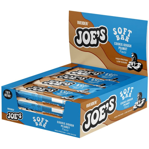 Joe’s Soft Bar Riegel von Weider mit Cookie-Dough Peanut Geschmack in der 0.6KG Packung. Naschen ohne Reue & schlechtes Gewissen: Lust auf was Süßes? Der Joe´s Soft Bar enthält pro Riegel nur 1,8 g Zucker und kann es dennoch mit jedem herkömmlichen Schokoriegel aufnehmen. Joe´s Soft Bar Geschmackserlebnis: Joe´s Soft Bar besticht durch einen extra weichen Eiweißkern, der mit einer leckeren Karamellschicht überzogen und mit zarter Vollmilchschokolade umhüllt ist. Unglaublich lecker: Mit Proteinen und nur 200 Kalorien pro Riegel kombiniert Joe´s Soft Bar makellose Nährwerte mit einem unwiderstehlichen Geschmack. Funktion trifft Genuss. Bausteine für Deine Muskeln: Proteine sind die Bausteine, aus denen die Muskulatur besteht. Mit seinem hohen Eiweißgehalt trägt der leckere Joe´s Soft Bar zum Erhalt & Aufbau von Muskelmasse bei.