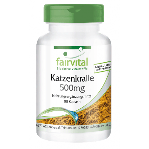 Katzenkralle 500mg Kapseln von Fairvital. Katzenkralle 500mg Kapseln von Fairvital Bei den Indianern des Regenwaldes galt die Katzenkralle schon immer als besondere Pflanze. Sie wird sogar als Heilige Pflanze des Regenwaldes bezeichnet. Die innere Rinde eines dornigen Weingewächses, das an die Krallen einer Katze erinnert, wurde traditionell für das allgemeine Wohlbefinden verwendet. Hinweis: In den ersten Tagen des Verzehrs kann der Urin eine starke Färbung bzw. einen starken Geruch aufweisen. Gutes aus der Natur!