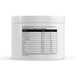 Kollagenhydrolysat (65,22%), Überzugsmittel: Hydroxypropylmethylcellulose, Natriumhyaluronat (8,05%), L-Ascorbinsäure (2,03%), Zinkbisglycinat (1,55%), Granatapfelfrucht-Trockenextrakt (1,45%), Trennmittel: L- Leucin, Nicotinamid (1,39%),Reisstärke, Retinylacetat (0,47%), Cholecalciferol (0,17%), Natriumselenit (0,01%)