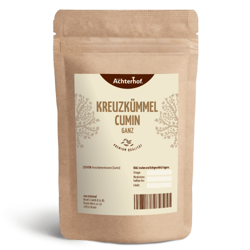Kreuzkümmel Cumin ganz vom Achterhof. Aromatisch-würziger Kreuzkümmel in hoher Qualität Kreuzkümmel kaufen: Hol dir eines der ältesten Gewürze der Welt! Kreuzkümmelsamen findest du im Laden häufig als Cumin. Teilweise liest du auch die Bezeichnung Römischer Kümmel, wenn du Kreuzkümmel kaufen möchtest. Mit dem bei uns bekannteren Kümmel ist er jedoch nur namentlich verwandt. Doch römisch sind beziehungsweise waren die rundlichen Samen in der Tat. Bereits der römische Koch Apicius erwähnte Kreuzkümmel in seinen Aufzeichnungen, und diese gehören immerhin zu dem ältesten überlieferten Kochbuch der damaligen Zeit. Kreuzkümmelsamen haben also ganz schön viel Geschichte auf dem Buckel. Das Traditionsgewürz Kreuzkümmel kaufen ist heute einfacher denn je. Bei uns bist du gerade genau an der richtigen Stelle. Die bewährte Qualität vom Achterhof gilt selbstverständlich auch für unsere Kreuzkümmelsamen. Wir verpacken dir deine gewünschte Menge und schicken sie dir schnellstmöglich nach Hause. Tipp: Vor der Verwendung Kümmel im Mörser zerstoßen, so entfaltet er ein noch intensiveres Aroma. Oder gleich hier Cumin gemahlen bestellen. Kreuzkümmelsamen: Der Duft aus 1001 Nacht Heute ist Cumin vor allem in der arabischen Küche weitverbreitet und sehr beliebt. Auch die Türken und Griechen nutzen Kreuzkümmelsamen mit Begeisterung für ihre Gerichte. Falafel, Köfte oder gegrilltes Lammkotelett bekommen ein unvergleichliches Aroma, wenn sie mit Kreuzkümmel gewürzt werden. Kreuzkümmel kaufen lohnt sich auch für dich, wenn orientalische Kost nur selten auf deinem Speiseplan steht. Zum Einen lohnt sich ein kleiner Ausflug in die arabische Küche und ein wenig Abwechslung, zum anderen kannst du das Gewürz auch für viele andere Gerichte verwenden. Du hast keine rechte Idee, bist aber neugierig? Dann lies doch einfach, was Cumin alles kann und warum es sich absolut bezahlt macht, Kreuzkümmel zu kaufen. Grillst du gerne? Dann gib ein wenig Kreuzkümmel ans Fleisch, oder bereite eine würzige Marinade daraus zu. Auch aus geschmortem Gemüse machen bereits wenige der Samen ein exotisches Geschmackserlebnis. Kombinieren lässt sich das Gewürz übrigens wunderbar. Knoblauch, Thymian oder Ingwer sind gute Aromenpartner für die kleinen Kreuzkümmelsamen. Doch wie genau musst du dir diese nun vorstellen? Einen kleinen Vorgeschmack geben wir dir gerne. Kreuzkümmel schmeckt sehr intensiv, feinherb und weist dezente Röstaromen auf. Doch eines versprechen wir dir schon jetzt: allein der Duft wird dich umhauen! Ein schwerer, warmer, krautiger Duft, wird durch deine Küche wehen, wenn du Kreuzkümmel kaufen wirst. Schwer zu beschreiben ist es, das einmalige Aroma der Kreuzkümmelsamen. Aber wenn du dich dazu entscheidest, Kreuzkümmel kaufen und ausprobieren zu wollen, kannst du unsere Begeisterung schon bald nachvollziehen. Kreuzkümmel oder auch Cumin genannt, gehört zu den ältesten Gewürzen der Welt und ist auf Grund seines kräftigen, herben Geschmacks vor allem in der arabischen Küche sehr beliebt ist. Auch in der indischen Ayurvedalehre findet das Gewürz eine große Bedeutung.