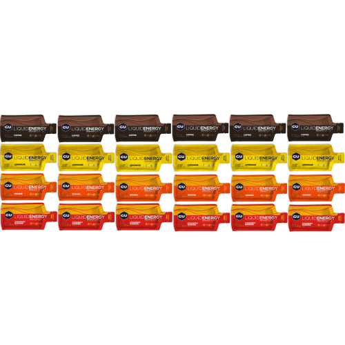 Liquid Energy Gel 24er Mixpaket GU Energy Labs mit Gemischt Geschmack in der 1.44KG Packung. GU Liquid Energy Gels GU Liquid Energy Gels versorgen Athleten aller Sportarten und Leistungsstufen mit hochwertiger und langanhaltender Energie. Jede Portion Gel bietet eine ausgewogene Mischung aus Kohlenhydraten, Elektrolyten und Aminosäuren. Nicht enthalten sind dagegen unnötige Mengen an Vitaminen, künstlichen Geschmacksstoffen und sonstigen Zusätzen, die nicht für die Versorgung während des Sports gebraucht werden. GU ist einfach einzunehmen, schmeckt gut und bringt genau das mit, was für Höchstleistungen notwendig ist. Durch Ihre flüssige Konsistenz lassen sich die Liquid Gels problemlos ohne Wasser benutzen. Was macht die GU Liquid Gels besonders? Neben dem einzigartig leckeren und natürlichen Geschmack heben sich GU Liquid Gels durch ihre Inhaltstoffe und deren Zusammensetzung hervor. Alle Inhaltsstoffe wurden perfektioniert um dich nachhaltig mit Energie zu versorgen – ohne Schnickschnack. Wie viele GU Liquid Gels brauche ich für meinen Sport? Die Menge an GU Liquid Gels die du benötigst hängt von der Art und Dauer der sportlichen Aktivität ab. Bei einer mittleren Intensität empfehlen sich 1-2 Gels pro Stunde, bei besonders hoher Intensität können 2-3 Gels pro Stunde genutzt werden. GU for it!