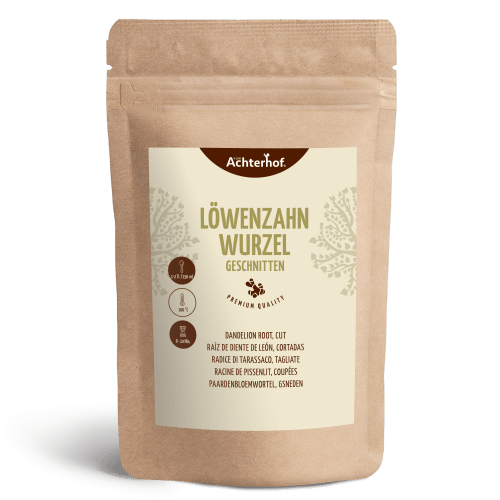 Löwenzahnwurzel geschnitten vom Achterhof. Löwenzahnwurzel – Unkraut oder wertvolle Pflanze? Für Gärtner ist der Löwenzahn ein verhasstes Unkraut, für Kräuterkundler und für die meisten Menschen einfach nur ein Bote des Frühlings. Hildegard von Bingen verwies auf die in der Pflanze enthaltenen Bitterstoffe. Während sich aus den Blättern der Pflanze ein leckerer und dem kultiviertem Löwenzahn, dem Rucola, geschmacksähnlicher Salat zubereiten lässt, war von der Löwenzahnwurzel lange Zeit keine Rede. Heute weiß man, dass die gesamte Pflanze in der Kräuterkunde von hoher Bedeutung ist. Um einen Aufguss oder einen Tee zuzubereiten, wird die getrocknete Löwenzahnwurzel in ein Teesieb gefüllt und mit siedendem Wasser übergossen. Damit Du den Tee genießen kannst, solltest Du ihn nicht länger als 8 bis maximal 10 Minuten ziehen lassen. Mit ein wenig Honig kannst Du die Bitterstoffe neutralisieren, nicht aber die schnell zu stark werdende Herbe genießen. Löwenzahn wird oft als Unkraut beschrieben, das ist die Pflanze jedoch ganz und gar nicht. Denn die Löwenzahnwurzel lässt sich in der Küche gut verwenden und besitzt außerdem noch einige wertvolle Inhaltsstoffe, die sie zur einer geschätzten Nutzpflanze machen. Auch Hildegard von Bingen verwies auf die in der Pflanze enthaltenen Bitterstoffe. Schon gewusst – das Produkt gibt es auch in Bio-Qualität .