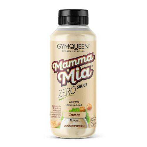 Mamma Mia Zero Saucen GYMQUEEN mit Crazy Caesar Geschmack in der 0.265L Packung. WAS SIND MAMMA MIA ZERO SAUCEN? Die Mamma Mia Zero Saucen sind kalorienreduzierte Allrounder-Saucen für den vielseitigen Einsatz in deiner Küche. Im Vergleich zu herkömmlichen Supermarkt-Saucen enthalten sie weniger Kalorien, weniger Fett und weniger Zucker. So kannst du klassische Saucen ganz einfach ersetzen und sparst im Alltag Kalorien. Ob für warme oder kalte Speisen, herzhafte Gerichte oder süße Speisen – die Mamma Mia Zero Saucen lassen sich flexibel kombinieren und heben jedes Gericht geschmacklich auf ein neues Level. FÜR WEN SIND MAMMA MIA ZERO SAUCEN GEEIGNET? Die Mamma Mia Zero Saucen richten sich an alle, die Genuss und bewusste Ernährung miteinander verbinden möchten. Ob du deine Kalorien im Blick behältst, deine Ernährung optimierst oder einfach smarter genießen willst – die Mamma Mia Zero Saucen unterstützen dich dabei, deinen Alltag unkompliziert und genussvoll zu gestalten. 1 Enthält von Natur aus Zucker Ob Gemüsepfannen, Salate oder Bowls – mit der kalorienarmen Mamma Mia Zero Sauce „Crazy Ceasar“ ohne Zuckerzusatz und ohne Fett wird deine Lieblingsspeise zur wahren Geschmacksexplosion. Der leckere herzhaft-würzige Geschmack von Käse und Knoblauch macht jedes deiner Gerichte zu einer absoluten Geschmacksexplosion. Außerdem ist die Sauce „Crazy Ceasar“ vegan.
