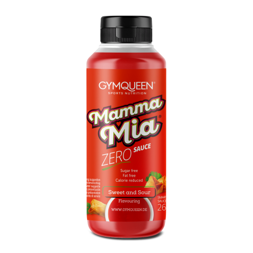 Mamma Mia Zero Saucen GYMQUEEN mit Sweet & Sour Geschmack in der 0.265L Packung. WAS SIND MAMMA MIA ZERO SAUCEN? Die Mamma Mia Zero Saucen sind kalorienreduzierte Allrounder-Saucen für den vielseitigen Einsatz in deiner Küche. Im Vergleich zu herkömmlichen Supermarkt-Saucen enthalten sie weniger Kalorien, weniger Fett und weniger Zucker. So kannst du klassische Saucen ganz einfach ersetzen und sparst im Alltag Kalorien. Ob für warme oder kalte Speisen, herzhafte Gerichte oder süße Speisen – die Mamma Mia Zero Saucen lassen sich flexibel kombinieren und heben jedes Gericht geschmacklich auf ein neues Level. FÜR WEN SIND MAMMA MIA ZERO SAUCEN GEEIGNET? Die Mamma Mia Zero Saucen richten sich an alle, die Genuss und bewusste Ernährung miteinander verbinden möchten. Ob du deine Kalorien im Blick behältst, deine Ernährung optimierst oder einfach smarter genießen willst – die Mamma Mia Zero Saucen unterstützen dich dabei, deinen Alltag unkompliziert und genussvoll zu gestalten. 1 Enthält von Natur aus Zucker Mamma Mia – endlich Saucen, die zu deinem Alltag passen. Unsere Mamma Mia Zero Saucen (265ml) stehen für vollen Geschmack mit bewusstem Genuss. Sie sind fettarm bzw. fettfrei, kalorienreduziert und kommen ganz ohne Zuckerzusatz¹ aus – ideal für alle, die sich kalorienbewusster ernähren möchten, ohne auf den vollen Genuss zu verzichten. Ob zum Kochen, Verfeinern, Dippen oder als Topping: Die Mamma Mia Zero Saucen lassen sich vielseitig einsetzen und bringen Abwechslung in jede Mahlzeit – vom herzhaften Hauptgericht bis hin zu süßen Speisen.
