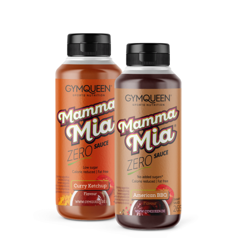 Mamma Mia Zero Saucen 2er Pack GYMQUEEN. Schluss mit trockenen Steaks, faden Salaten und eintönigen Beilagen in der Diät! Mit den kalorienreduzierten und fettarmen Mamma Mia Zero Saucen von GYMQUEEN holst du dir endlich wieder Geschmack auf den Teller. Gönn dir bspw. Aioli zu Ofenkartoffeln, Sweet Thai Chili zu Reisgerichten oder die süßen Saucen auf deinem Lieblingsdessert. Ganz egal, ob du abnehmen, dich einfach gesünder ernähren oder fitter sein möchtest – die Zero Saucen in vielen köstlichen Sorten und ohne Zuckerzusatz 1 sind ein echtes Must-Have in der Küche einer jeden GYMQUEEN. 1Enthält von Natur aus Zucker (außer Balsamico) Die süßen und herzhaften Mamma Mia Saucen sind die optimale Ergänzung für eine bewusste Ernährung. Denn die Zero Saucen sind kalorienreduziert und fettarm oder sogar fettfrei. Darüber hinaus kommen die Zero Saucen ohne Zuckerzusatz 1 aus – manche Geschmäcker sind sogar zuckerfrei. Die herzhaften Saucen passen perfekt zu buntem Ofengemüse oder Burgern und Bowls. Die süßen Sorten solltest du unbedingt zu French Toast Rolls, Tassenkuchen oder im Kaffee probieren.
