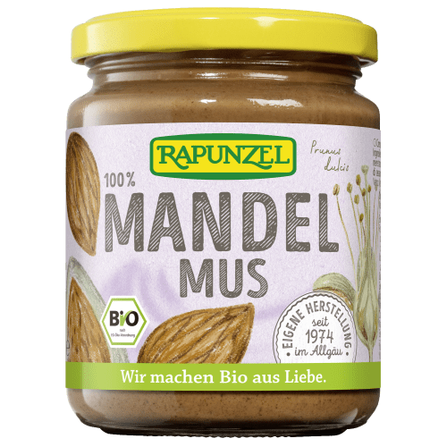 Mandelmus bio Rapunzel. Alleskönner-Brotaufstrich aus Bio-Qualität! Eco control number: DE-ÖKO-006 Das Mandelmus von Rapunzel bietet die perfekte Möglichkeit, Deinen Speiseplan zu bereichern. Seine vielfältigen Verwendungsmöglichkeiten überzeugen ebenso wie die hochwertige Bio-Qualität oder das hervorragende Aroma. Das Mus enthält keine Zusätze und besteht ausschließlich aus Mandeln aus ökologischem Landbau, die in einem speziellen Verfahren mit Heißluft aus regenerativen Energien geröstet wurden. Du kannst das Mandelmus von Rapunzel auch bei einer vegetarischen oder veganen Ernährung genießen.