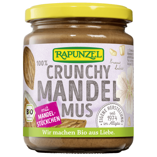 Mandelmus Crunchy Rapunzel mit Mandel Geschmack in der 0.25KG Packung. Mit viel Erfahrung, Hingabe und Sorgfalt hergestellt, bestehen die Nussmusse zu 100% aus Mandeln aus Europa. Die Mandeln werden fein geröstet und sorgfältig vermahlen, um einen intensiv-aromatischen Genuss zu bieten. Knackige Mandelstückchen sorgen für den besonderen Crunch. Da ausschließlich Bio-Nüsse verwendet und auf Zusätze verzichtet wird, kann sich das nusseigene Öl an der Oberfläche absetzen. Einfach kräftig durchrühren, und das Mus wird wieder cremig. Eco control number: DE-ÖKO-006 Seit 1974 stellt Rapunzel Nussmusse in eigener Herstellung her. Beim Rösten entfaltet sich das volle Aroma der Mandeln, das anschließend durch feines Vermahlen perfekt zur Geltung kommt. Die sorgfältige Herstellung garantiert dir einen einzigartigen Geschmack!