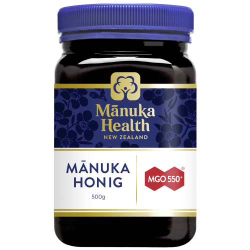 Manuka Honig MGO 550+ Manuka Health. Was ist Manuka-Honig MGO 550+ von Manuka Health und wie wirkt es? Manuka-Honig MGO 550+ von Manuka Health wird von neuseeländischen Bienen aus dem Nektar der Manukasträucher gewonnen. Dieser Honig schmeckt nicht nur wunderbar mild, sondern enthält den Wirkstoff Methylglyoxal (MGO) auch in einer sehr viel stärkeren Konzentration als herkömmliche Blütenhonige. Du kannst die Manuka-Honige auch in heißen Tee oder Milch einrühren, denn MGO™ ist weitgehend hitzeunempfindlich. Manuka-Honig MGO 550+ von Manuka Health kann allen Menschen das Leben versüßen, die sich gesund und bewusst ernähren möchten. Kleinkindern unter 12 Monaten ist die Einnahme roher Lebensmittel wie Honig nicht anzuraten. Wenn Du den Honig pur verzehren möchtest, nimm 1 bis 2-mal täglich einen Teelöffel voll Manuka-Honig MGO 550+ von Manuka Health zu Dir und lass ihn langsam im Mund zergehen. Du kannst die Manuka-Honige auch in heißen Tee oder Milch einrühren, denn MGO™ ist weitgehend hitzeunempfindlich. Verzehrempfehlung: 1-2 Teelöffel pro Tag. Nutze die Power der Natur!