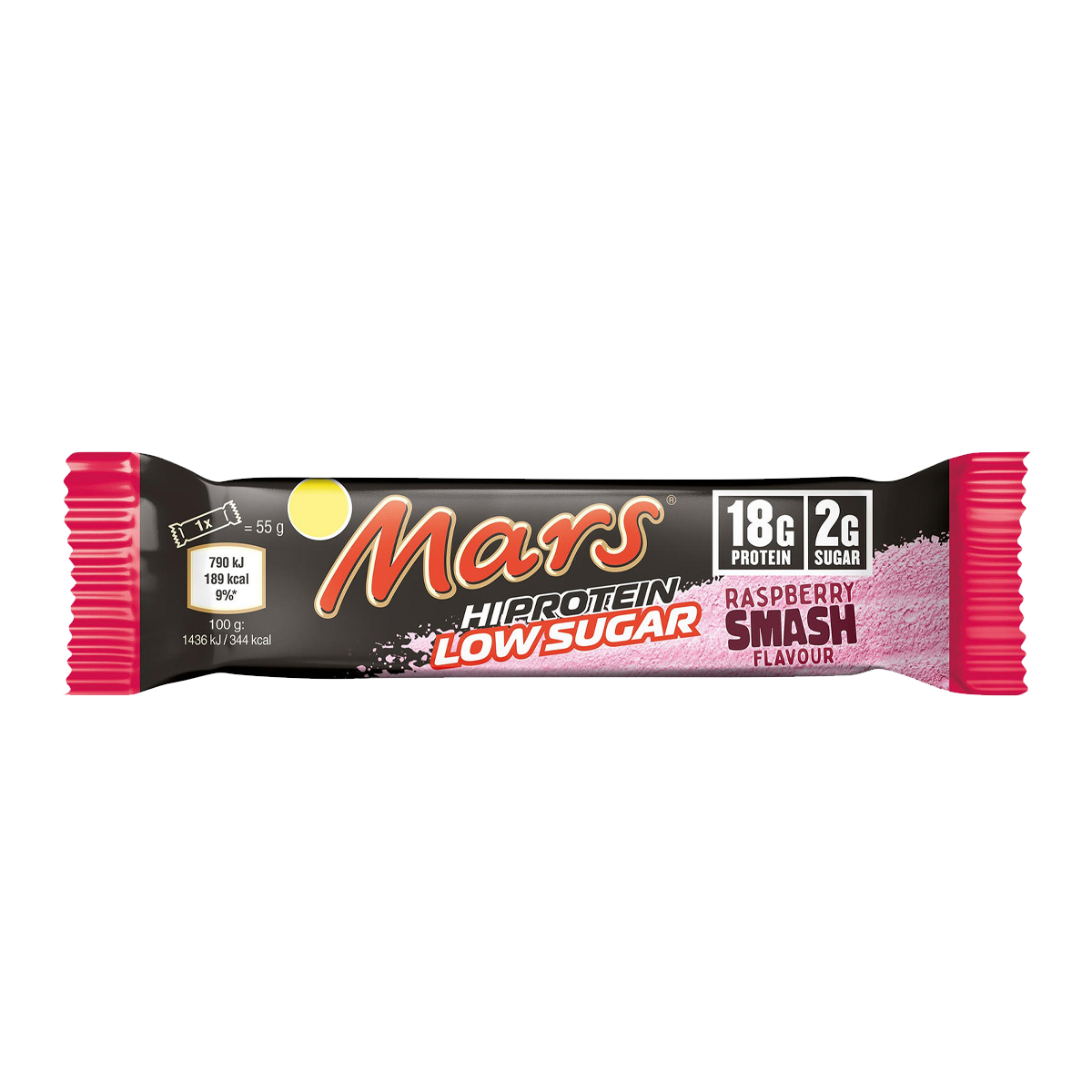 Katapultiere dich mit dem Mars Low Sugar High Protein Bar in weit entfernte Genuss-Galaxien! Die verführerische Raspberry Smash Variante ist eine galaktische Kombination aus dem klassischen Mars-Geschmack und einem frischen Himbeertwist. Mit nur 189 Kalorien pro Riegel und deutlich reduziertem Zuckergehalt ist dieser 55 g Snack die perfekte Wahl für alle, die auf ihre Ernährung achten, ohne auf Genuss verzichten zu wollen. Beeindruckende 18 g Protein als Support für den Muskelaufbau hat diese Raketenzündung außerdem zu bieten. Das ist nicht nur eine sättigende Zwischenmahlzeit, sondern ein low sugar Proteinriegel voller Geschmack und Nährwert!