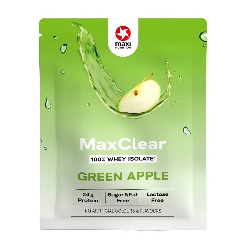 Du willst die Vorteile eines Protein Shakes und wünschst dir gleichzeitig eine kalorienarme Erfrischung? Unser MaxClear verbindet das Beste aus zwei Welten: Du bekommst hochwertiges Whey Isolate als fruchtig-leichten Erfrischungsdrink. Entdecke jetzt das MaxClear Green Apple im praktischen 30-Gramm-Tütchen – perfekt für unterwegs oder zum Probieren.Egal, ob du ein bestimmtes Fitnessziel verfolgst oder einfach aktiv bist: Dein Körper braucht Proteine! Sie sind an vielen wichtigen Prozessen beteiligt, unter anderem tragen sie zum Erhalt und zur Zunahme von Muskelmasse bei. Damit deine Muskulatur bekommt, was sie verdient, stecken in unserem MaxClear 80% Eiweiß aus hochwertigem Whey Isolate. Das entspricht gewaltigen 24 Gramm pro Beutelchen. Zusätzlich enthält das MaxClear Vitamin B6 für einen normalen Protein- und Glycogenstoffwechsel sowie zur Verringerung von Müdigkeit.Clear Whey Isolate Green Apple MaxClear 30 g:• 24 g Eiweiß pro Portion aus Whey Isolate• Besonders leichter und erfrischender Protein-Shake mit natürlichem Apfelsaftkonzentrat• Hervorragende Löslichkeit, kein Verklumpen • Kalorienarm• Laktose-, zucker- und fettfrei• Glutenfrei• Mit Vitamin B6• Ohne künstliche Farbstoffe/Aromen