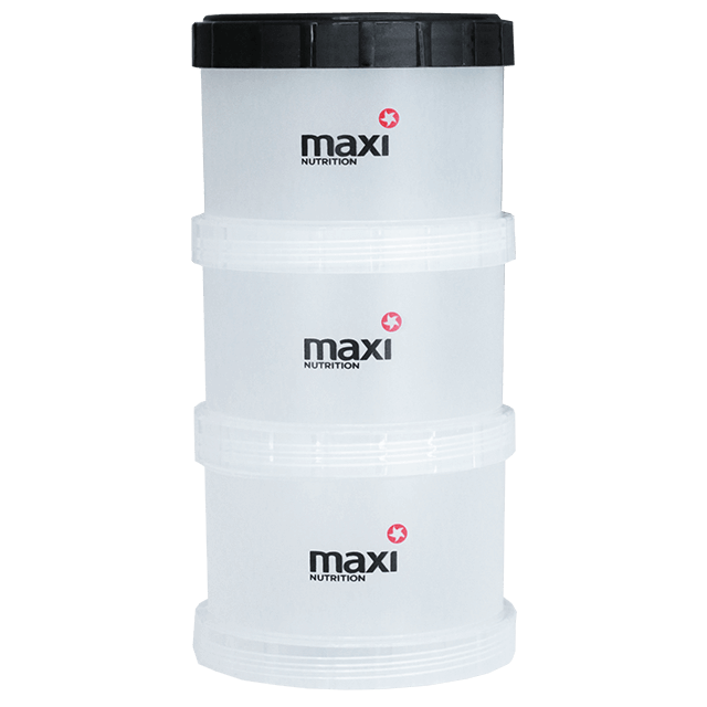 MaxiNutrition Power Tower schwarz – Aufbewahrungs- und Transportbehälter für Whey & Eiweißpulver- kombinierbare Portions- und Transportbehälter- Deckel mit Drehverschluss- 3 x 180 ml FassungsvolumenDer MaxiNutrition Power Tower besteht aus hochwertigem Kunststoff. Der ist nicht nur bruchsicher, sondern auch für die Aufbewahrung von Lebensmitteln sicher. Da die Power Tower Transportbehälter durchsichtig sind, siehst du bereits von außen, welcher Inhalt in welcher Menge in welcher Box ist.Unser Power Tower besteht aus drei separaten Portionsbehältern, die durch praktische Schraubgewinde miteinander kombiniert werden. Die oberste Box wird mit einem Schraubdeckel sicher verschlossen. Jede Power Tower Box hat ein Fassungsvermögen von 180 ml – das entspricht in etwa einer Menge von 90 g Proteinpulver.