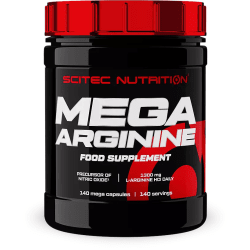 Mega Arginine Kapseln von Scitec Nutrition. Was ist das Mega Arginine von Scitec Nutrition? Die energiereiche Stickstoff-Phosphat-Verbindung ist an zahlreichen biologischen Funktionen im Körper beteiligt und liegt hier in hochwertiger, konzentrierter Kapselform vor. Sei fit und wachsam, trainiere härter und freue dich über zufriedenstellende Ergebnisse! Dein Körper braucht seine externe Arginin-Zufuhr! Speziell Bodybuilder und Kraftsportler zählen auf Arginin-Kapseln. 30 Minuten vor dem Training sollte eine Kapsel eingenommen werden, um ihre Wirkung exakt zu entfalten. Zusätzlich kann auch eine Kapsel direkt nach dem Aufstehen eingenommen werden. Achtung! Diese Kapseln stehen in Ergänzung einer ausgewogenen Ernährung und sollten nicht anstelle einer vollwertigen Mahlzeit stehen. Bereite deine Muskeln auf den nächsten Pump vor – mit Mega Arginine von Scitec!