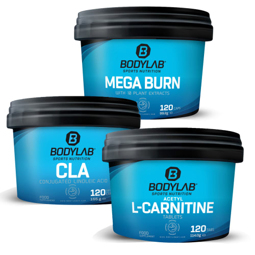 Megadeal 8 Plus Bodylab24. Eine beliebte Kombination, die sich an hart trainierende Bodybuilder und Kraftsportler in Definitionsphasen oder während einer kohlenhydratreduzierten Diät richtet – vielfach bewährt! Warum Megadeal 8 Plus bestellen? Unsere neuen Mega Burn Kapseln von Bodylab24 werden häufig in Verbindung mit einer LOW CARB DIÄT von z.B. Kraftsportlern in Definitions- und/oder Diätphasen eingenommen. Die Kapseln enthalten eine Kombination aus bioaktiven Pflanzenstoffen. Kombiniert haben wir die Mega Burn Kapseln mit den Bodylab24 Acetyl L-Carnitine Kapseln. Diese enthalten die natürliche Aminosäure N-Acetyl-L-Carnitin, empfohlen zur Einnahme ca. 30 Minuten vor dem Training. Dazu sind noch die Bodylab24 CLA Kapseln im Megadeal 8 Plus enthalten, die konjugierte Linolsäure (eine mehrfach ungesättigte Fettsäure) liefert. CLA wird zu den essentiellen (lebensnotwendigen) Fettsäuren gezählt und muss über die Nahrung oder Nahrungsergänzungsmittel aufgenommen werden, oft genutzt bei einer kohlenhydrathreduzierten Ernährung. Mega Burn, Acetyl L-Carnitine + CLA – eine beliebte Kombination für hart trainierende Bodybuilder/Kraftsportler.