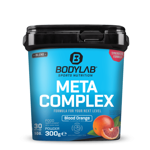 Meta Complex Pulver von Bodylab24 mit Blood Orange Geschmack in der 0.3KG Packung. Meta Complex – Formula for your next level. Verschiedene Pflanzenextrakte, Aminosäuren, Niacin und Selen – eine Top-Kombination für sportlich Aktive und zur Nutzung im normalen Alltag. Unser Meta Complex vereint gezielt Pflanzenextrakte und Pflanzenstoffe mit Aminosäuren, Niacin und Selen in einer Formel, um dich auf das nächste Level zu bringen – mit leckerem Blutorangengeschmack, leichter Dosierbarkeit und bester Löslichkeit! Die sorgfältig zusammengesetzte Meta Complex Formel von BODYLAB liefert mit Niacin*, das zu einem normalen Energiestoffwechsel beiträgt, und Selen**, das die Zellen vor oxidativem Stress schützt, zwei Mikronährstoffe aus dem Vitamin- und Mineralstoffbereich. Dazu kommen Pflanzenextrakte aus Guarana, Yerba Mate und Grüntee, die als natürliche Koffeinquelle beigefügt sind und die für Wachheit, Konzentration und antioxidative Vielfalt bekannt sind. Ebenfalls enthalten sind Citrus Aurentium-Extrakt, Quercetin, Synephrine und schwarzer Pfefferextrakt als weitere Pflanzenstoffe. Wichtige Aminosäuren wie L-Carnitin L-Tartrat, L-Tyrosin, N-Acetylcystein (NAC) und Glycin sind ebenfalls Teil der ausgewogenen Formel. L-Tyrosin ist beispielsweise eine Vorstufe wichtiger Neurotransmitter, NAC liefert stabile Cystein-Bausteine und Glycin ist eine vielseitige Aminosäure für Protein- und Zellfunktionen. Gönn Dir einen leckeren Drink in Blutorangengeschmack und versorge deinen Körper in sportlich intensiven Trainingsphasen oder im Alltag mit wichtigen Nährstoffen. *Niacin trägt zu einem normalen Energiestoffwechsel bei. Niacin trägt zur Verringerung von Müdigkeit und Ermüdung bei. **Selen trägt dazu bei, die Zellen vor oxidativem Stress zu schützen. Bereit für das nächstes Level? Meta Complex von BODYLAB bringt vieles zusammen, was du für deinen Alltag und dein Training brauchst! Pflanzenpower aus Extrakten von Guarana, Yerba Mate und Grüntee trifft auf wichtige Aminosäuren wie L-Carnitin, Tyrosin und NAC! Dazu weitere Pflanzenstoffe + Niacin* und Selen**.