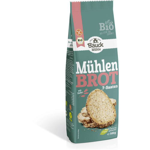 Mühlenbrot 7-Saaten Backmischung bio Bauckhof. Mühlenbrot 7-Saaten Backmischung bio von Bauckhof Das neue Haferbrot mit 7 Saaten schmeckt leicht würzig. Egal ob in der Schule oder auf der Arbeit, es ist das perfekte Körnerbrot für den Alltag. Schnell und einfach zubereitet, kann das glutenfreie Hefebrot ohne Backform im Ofen gebacken werden. Eco control number: DE-ÖKO-007 Eine Backmischung auf der Basis von glutenfreien Hafervollkornflocken!