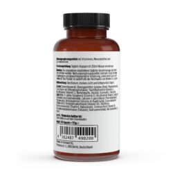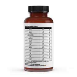 Sonnenblumenöl, Überzugsmittel: Gelatine, Magnesiumoxid, Calciumsalze der Orthophosphorsäure, Feuchthaltemittel Glycerin, L-Ascorbinsäure (Vitamin C), Bienenwachs, Inositol, Eisensulfat, Zinksulfat, Sojalecithin, D- Alpha-Tocopherol (Vitamin E), Nicotinamid (Niacin), Farbstoff Eisenoxide und Eisenhydroxide, Calcium-D-pantothenat (Pantothensäure), Mangansulfat, Retinylpalmitat (Vitamin A) Kupfersulfat, Cyanocobalamin (Vitamin B12), Pyridoxinhydrochlorid (Vitamin B6), Riboflavin, Thiaminmononitrat (Thiamin), Kaliumiodat, Cholecalciferol (Vitamin D), Pteroylmonoglutaminsäure (Folsäure), Natriummolybdat, Natriumselenit, D-Biotin
