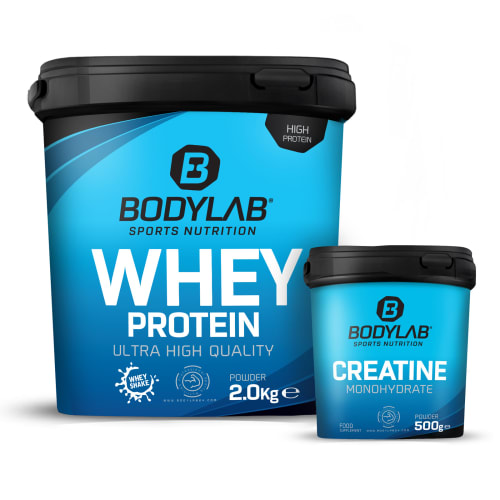 Muskel Aufbau Deal Bodylab24. Muskel Aufbau Deal mit Gratisversand EXCLUSIV bei Bodylab24! Bestes Whey Protein – ideal für den Muskelaufbau und -erhalt rund ums TrainingCreatine Monohydrat Powder – trägt zur Versorgung der Muskeln mit Energie beiShaker – für beste MichergebnisseAlles ausschließlich in unserem Shop und zum unschlagbaren Preis! Die perfekte Kombination für jeden Sportler – ob Einsteiger oder Profil. Ganz egal ob Du nun Bodybuilder, Kraftsportler oder Ausdauersportler bist! Das Muskel Aufbau Pack für den Start ins nächste Fitnesslevel – mit 2000g Bodylab Whey Protein & 500g Bodylab Creatine Monohydrate . Eine Kombination, die Deinen Muskeln rund ums Training zur Seite steht und Dich im Studio gut aussehen lässt. Erreiche das nächste Trainingsziel. Whey Protein zur Unterstützung deines Muskelaufbaus* Creatine zur Steigerung deiner Trainingsleistung** Im Muskelaufbau Deal bestellen und insgesamt 40 € sparen*** *Proteine tragen zum Aufbau von Muskelmasse bei. **3g Creatine pro Tag erhöhen die körperliche Leistung bei Schnellkrafttraining im Rahmen kurzzeitiger intensiver körperlicher Betätigung. ***Spare ca. 35€ im Bundle und zusätzlich die Versandkosten in Höhe von 4,90€.