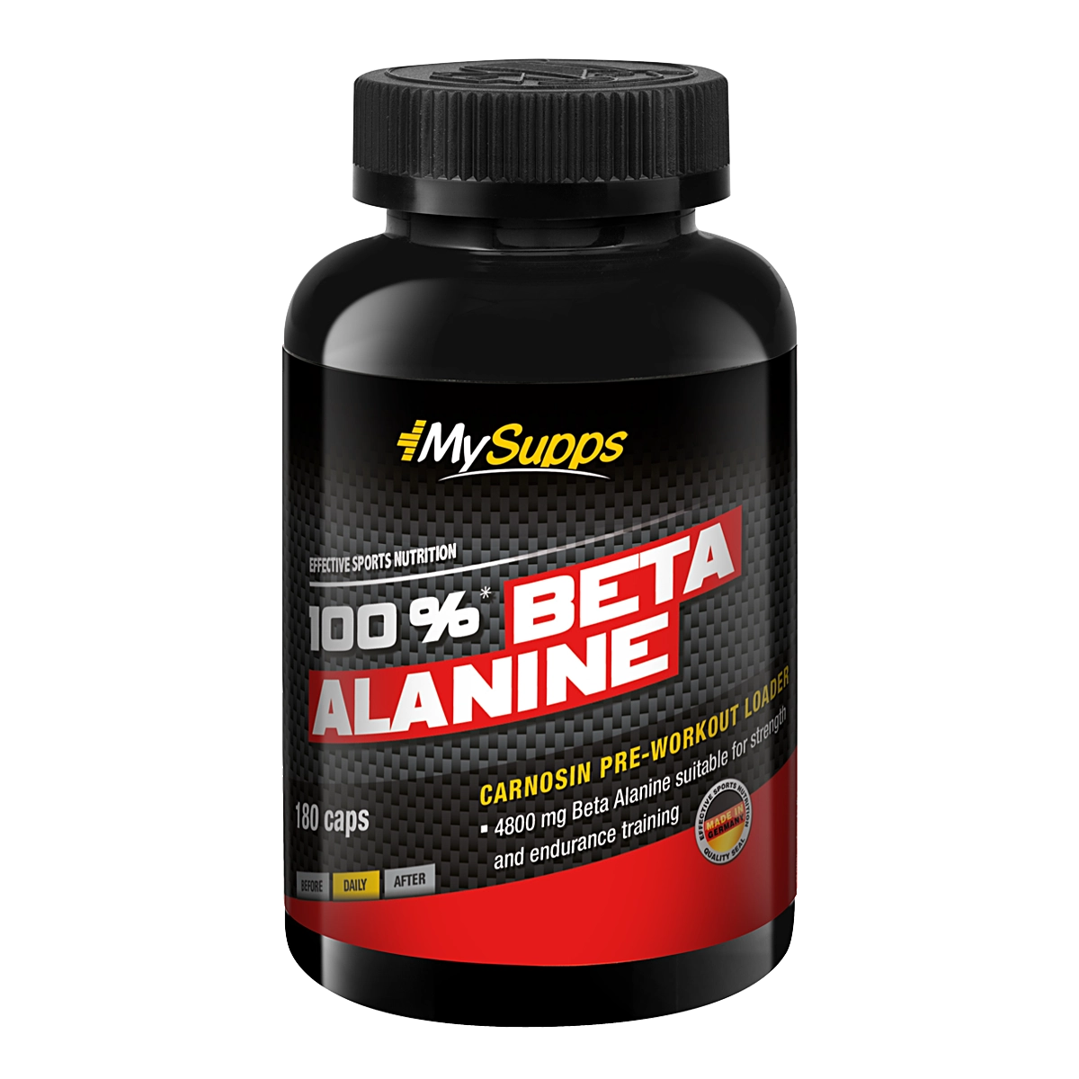 Die Aminosäure Beta Alanin wird in verschiedenen Körpergeweben hauptsächlich in der Muskulatur zu Carnosin aufgebaut. Bei Carnosin handelt es sich um eine natürliche Puffersubstanz. Durch ein Absinken des pH-Wertes während der Belastung kann der trainierte Muskel sauer werden. Dies ist dann als Brennen zu spüren. Durch die Abpufferung von sauren Wasserstoff-Ionen und der sich bildenden Milchsäure ist Carnosin mitverantwortlich für einen stabilen bzw. ausgeglichenen pH-Wert in den Muskeln. Starke Muskeln haben einen stabilen pH-Wert, da sie über größere Carnosinspeicher verfügen. Carnosin lat. Carnis = Fleisch befindet sich hauptsächlich in den Muskeln. In natürlichen Nahrungsmitteln des täglichen Lebens findet man Carnosin vor allem in weißem Fleisch Hähnchen, Pute etc. . In Getreideprodukten wie Nudeln oder Vollkornprodukten sucht man vergeblich nach Carnosin. Deswegen kann es bei einer fleischarmen und kohlenhydratreichen Ernährung zu einer ungenügenden Aufnahme von Beta Alanin kommen. Befindet sich zu wenig Beta Alanin im Körper, ist er nicht in der Lage, Carnosin zu bilden. My Supps 100% Beta Alanine kann deshalb eine hilfreiche Ergänzung für die tägliche Ernährung sein. Pro Tagesportion 6 Kapseln liefert es 4800 mg Beta Alanin. „Das Beta Alanine ist nicht nur deshalb mein Lieblings-Supplement, weil ich die Wirkung – dieses bekannte „Kribbeln“ – sofort spüre, sondern auch, weil es den pH-Wert im Muskel stabil hält und somit vor Übersäuerung schützt. Beta Alanine ermöglicht mir an guten Tagen, mehr Wiederholungen zu schaffen, wodurch ich noch mehr an mein Limit gehen kann. Beta Alanine ist für mich unverzichtbar.“ Johanna Fischer, Body Attack Athletin Besonders für Sportler mit kurzer, aber intensiver muskulärer Belastung kann Beta Alanin hilfreich sein. Das sind zum Beispiel Gewichtheber, Bodybuilder, Kampfsportler, Schwimmer, Leichtathleten Sprinter , Eishockeyspieler und Handballer.