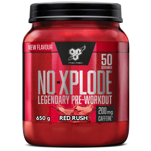 N.O.-Xplode Legendary Pulver von BSN mit Red Rush (Sour Cherry) Geschmack in der 0.65KG Packung. N.O.-Xplode von BSN 200mg Koffein, 3,2g Beta-Alanin und extreme Fokussierung. Mach dich bereit, länger zu pumpen und härter zu trainieren! BSN hat N.O.-XPLODE®, das erste komplette Pre-Workout, das 2004 auf den Markt kam und seitdem Athleten geholfen hat, Grenzen zu durchbrechen, wiederbelebt. Jetzt mit mehr Energie, mehr Gefühl, mehr Konzentration und einem erstaunlichen Geschmack. Die Gewichte werden nicht wissen, wie ihnen geschieht. Wenn du bereit bist, härter und länger zu pushen als bisher, wird N.O.-XPLODE dir helfen, dein Training auf ein neues Niveau zu bringen. Jetzt neu formuliert mit einer neuen Mischung für noch mehr Energie, Fokus und Geschmack!