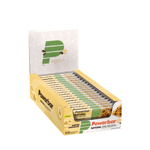 Natural Protein Riegel von Powerbar mit Banana Chocolate Geschmack in der 0.72KG Packung. Natural Protein von PowerBar Dir sind nicht nur Proteine wichtig, sondern auch natürliche und vegane Zutaten? Dann ist der Natural Protein ein idealer Begleiter für dich. Er ist mit besten, natürlichen Zutaten hergestellt, gleichzeitig vegan und schmeckt dabei besonders gut. Mit seinen 30% Protein ist er nicht nur als Snack nach dem Training geeignet, sondern schmeckt auch zwischendurch. Protein-Power für ein gelungenes Work-out!