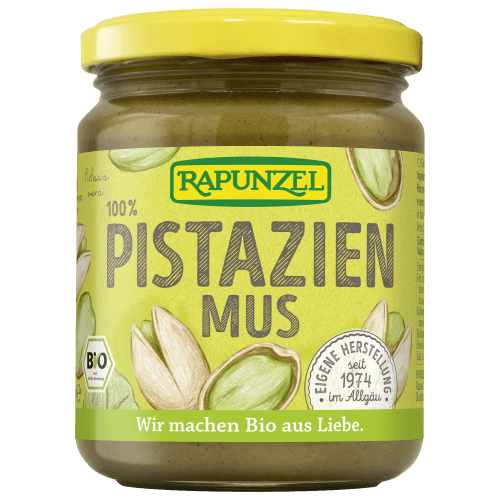 Pistazienmus bio Rapunzel mit Pistazie Geschmack in der 0.225KG Packung. Seit 1974 stellt Rapunzel in eigener Herstellung Nussmus her und garantiert Dir durch die sorgfältige Verarbeitung einen einzigartigen Geschmack. Die Röstung bringt das volle Aroma der Pistazien zur Geltung, während die feinste Vermahlung die perfekte Konsistenz erzielt. Eco control number: DE-ÖKO-006 Das Rapunzel Pistaziencreme wird mit viel Erfahrung, Hingabe und Sorgfalt aus 100% besten Bio-Pistazien hergestellt. Die Pistazien werden frisch geröstet und fein vermahlen, sodass sich das unverwechselbare Aroma entfaltet. Ganz ohne Zusätze – nur das pure, nusseigene Öl, das sich an der Oberfläche absetzt. Einfach gut umrühren, und das Mus wird wieder wunderbar cremig. Verwende die Pistaziencreme als köstlichen Brotaufstrich, in Porridge, Kuchen, Torten oder für die Zubereitung von Eis. Auch Pasta- und Gemüsegerichte lassen sich damit wunderbar verfeinern – ein vielseitiger Genuss, der jedes Gericht bereichert.