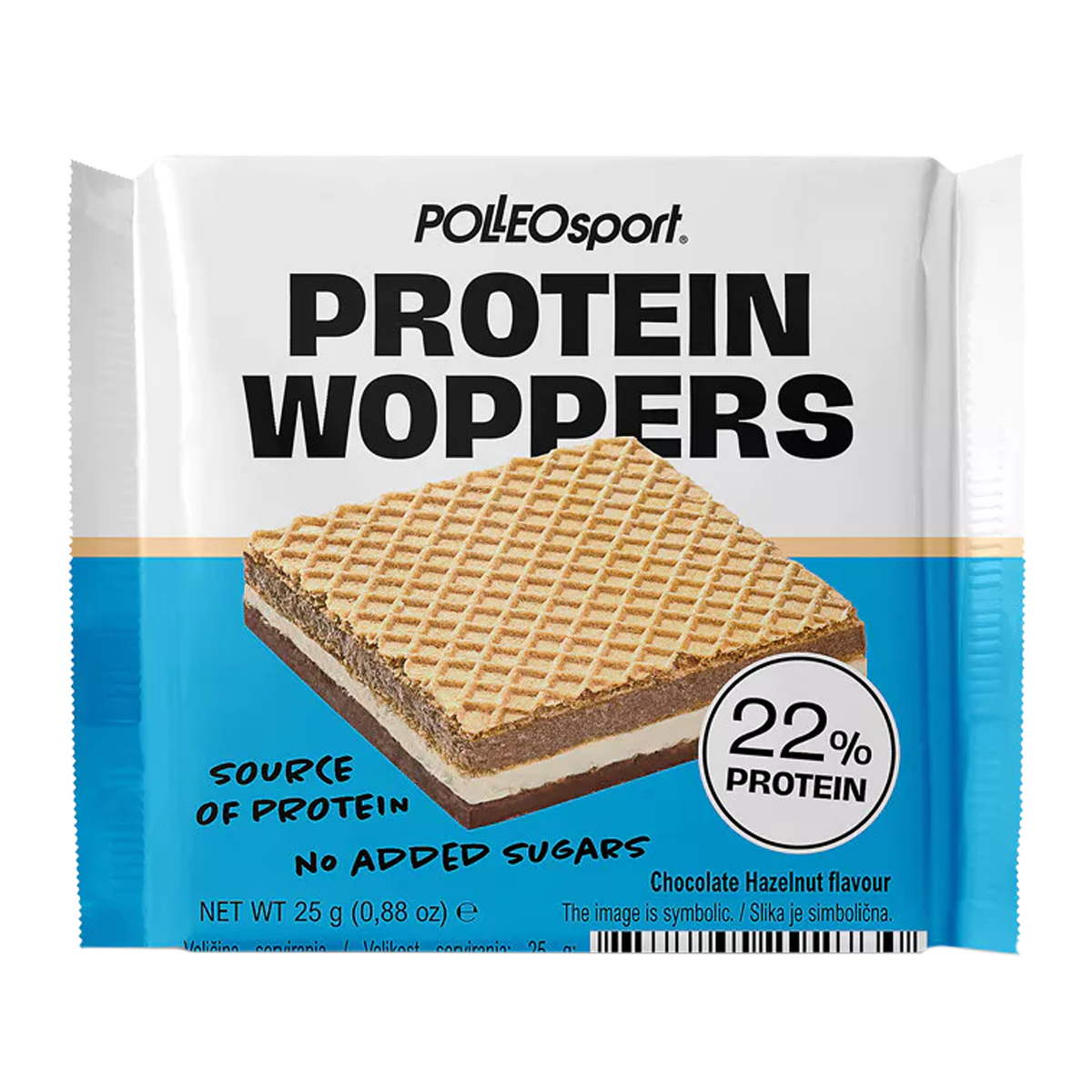 Der Protein Woppers bringt deine Kindheitserinnerung zurück: mit dem extra Plus an Protein. Drei knusprige Waferschichten umhüllen eine cremige Milch-Schoko-Haselnussfüllung, verfeinert mit gerösteten Haselnussstücken. Das ist ein echter Genuss, zugesetzt ohne Zucker, aber mit 21?% Proteinanteil, für ein gutes Gewissen beim Naschen! Mit seinen nur 130?kcal pro Riegel, 6,1?g Kohlenhydraten (davon 1,3?g Zucker), 9,1?g Fett und 5,4?g Protein bietet er ein ausgewogenes Nährstoffprofil. Diesen Proteinsnack kannst du vor, während oder nach dem Training oder auch einfach zwischendurch genießen, denn dank der praktischen Einzelverpackung passt er in jede Tasche. Ernergieschub – jederzeit griffbereit! Hergestellt in der EU, enthält der Riegel hochwertige Zutaten wie Molkeprotein-Isolat, Casein, Haselnusspaste und nur natürliche Süßstoffe wie Maltitol und Sucralose. Eine perfekte Balance zwischen Geschmack und Funktion!
