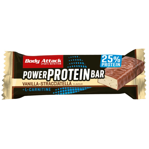 Power Protein-Bar Riegel von Body Attack mit Vanilla-Stracciatella Geschmack in der 0.84KG Packung. Body Attack – Power Protein Bar Ideal für Sport, Arbeit oder unterwegs – mit viel Eiweiß; und einfach lecker im Geschmack. Power Protein Bar von Body Attack – Vorteile: kleiner 35g Riegel – einzeln verpackt liefert ca. 9g Protein und 200mg L-Carnitin mit Vitaminen angereichert mehrere Geschmacksrichtungen erhältlich ideal für zwischendurch und unterwegs Was beinhaltet der Power Protein Bar? Jeder Riegel liefert ca. 16g schnell verfügbare Kohlenhydrate (Glukosesirup) und ca. 9g Eiweiß; (aus Milch- und Molkeneiweiß;). Dazu ist eine Vitaminmischung mit den Vitaminen E, C, einigen B-Vitaminen und L-Carnitin zugefügt. Für wen ist der Power Protein Bar gedacht? Der Riegel kann von Fitness-, Ausdauer- und Kraftsportler gleichermaßen verwendet werden. Er ist leicht verdaulich, liefert schnelle Energie und eine Extraportion Protein fürs Training. Ideal vor dem Training, als Auffüllung der geleerten Speicher danach oder als Sü&Süßigkeitenersatz unterwegs. Auch während einer kalorienreduzierten Ernährungsphase kann der Riegel mit seinen knapp 150 kcal als Süßigkeitenersatz dienen. Body Attack bietet zahlreiche leckere Geschmacksvariationen an. Wie wird der Power Protein Bar verwendet? Du kannst 1-2 Power Protein Bar ganz nach Bedarf zur Anreicherung der Proteinversorgung als kleine Zwischenmahlzeit, proteinreicher Süßigkeitenersatz oder rund ums Training verwenden. Power Protein-Bar – 24x35g – Vanilla-Stracciatella hat die PZN 10712629. Ideal für Sport, Arbeit oder unterwegs – mit viel Eiweiß und einfach lecker im Geschmack.